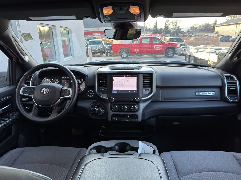 • Call 800-643-2112; Leather Wrapped Steering Wheel; Rear Dome with On/off Switch Lamp; Front Fog Lamps; Integrated Voice Command with Bluetooth; Connectivity - US/Canada; Premium Cloth 40/20/40 Bench Seat; Glove Box Lamp; Auto Power-Folding Mirrors; Footwell Courtesy Lamp; 4G LTE Wi-Fi Hot Spot; GPS Antenna Input; Exterior Mirrors with Heating Element; Global Telematics Box Module; Mirror Running Lights; Uconnect 5 W Radio with 8.4 Display; 8.4 Touchscreen Display; Foam Bottle Insert (door Trim Panel); Black Exterior Mirrors; 18 X 8.0 Polished Aluminum Wheels; Apple CarPlay; Big Horn Instrument Panel Badge; Power Adjustable Convex Aux Mirrors; Forward and Reverse Utility Lights; Locking Lower Glove Box; Selectable Tire Fill Alert; SiriusXM Satellite Radio; Power Heated Fold Telescope Mirrors; Exterior Mirrors with Supplemental Signals; Steering Wheel Mounted Audio Controls; Exterior Mirrors Courtesy Lamps; Dual Glove Boxes; Center Hub; Power Adjust Mirrors; 2nd Row in Floor Storage Bins; Power Telescoping Mirrors